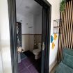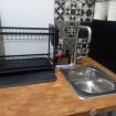 El baño tiene una ducha cómoda, perfecta para relajarte después de un día intenso, cuenta con un termo de 100 litros electrico. La cocina está bien equipada con vitrocerámica, fregadero, nevera y microondas, junto a un comedor abierto, ideal para disfrutar de una buena comida. Las habitaciones de alojamiento tienen un diseño elegante que incorpora techos parcialmente abiertos, ofreciendo una sensación de amplitud y luminosidad sin comprometer la privacidad de los huéspedes.